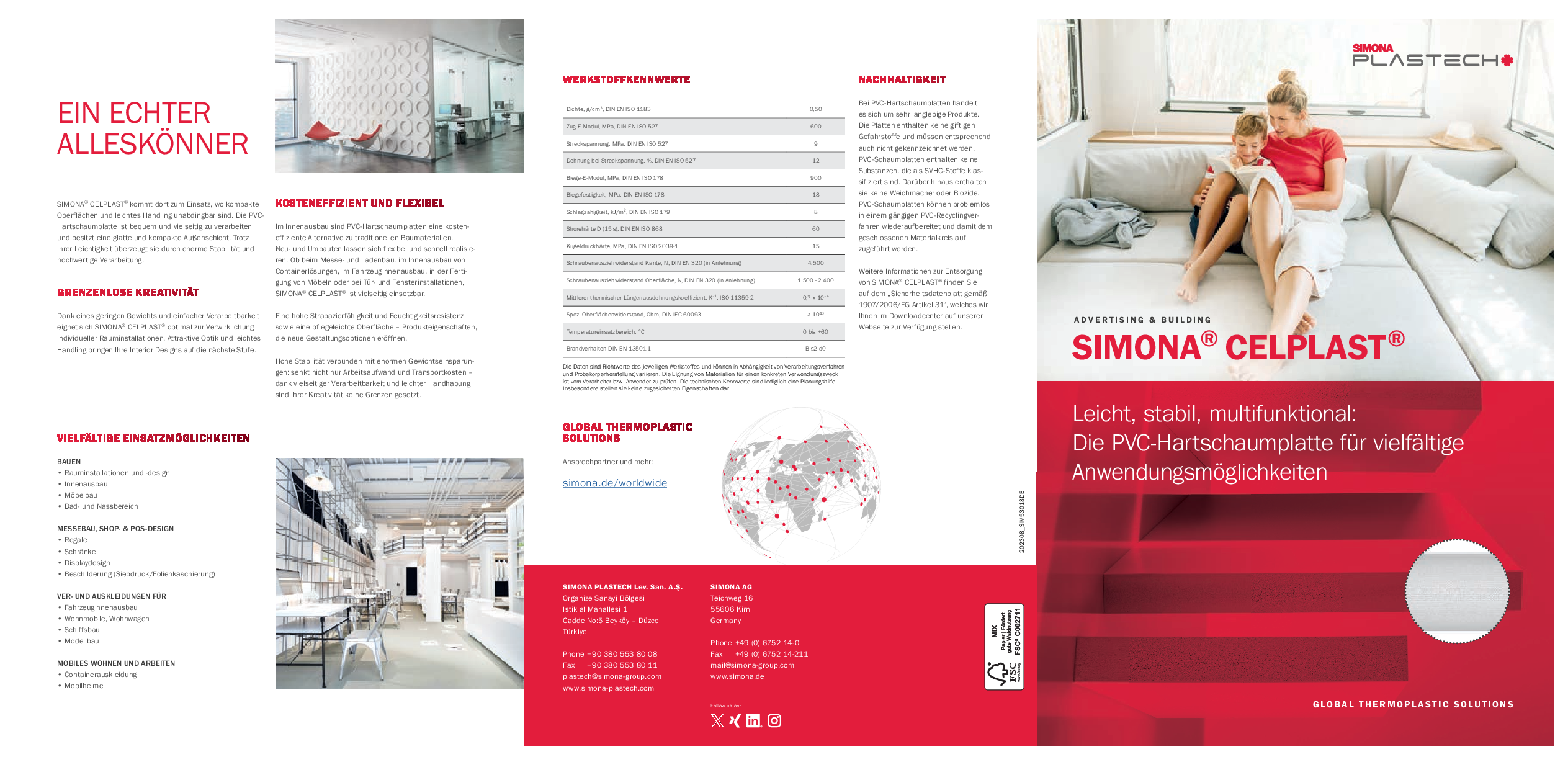 SIMONA® CELPLAST® – Leicht, stabil, multifunktional Broschüren