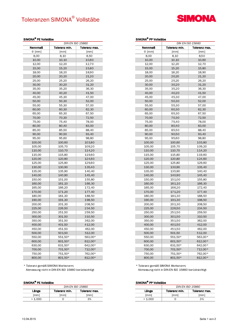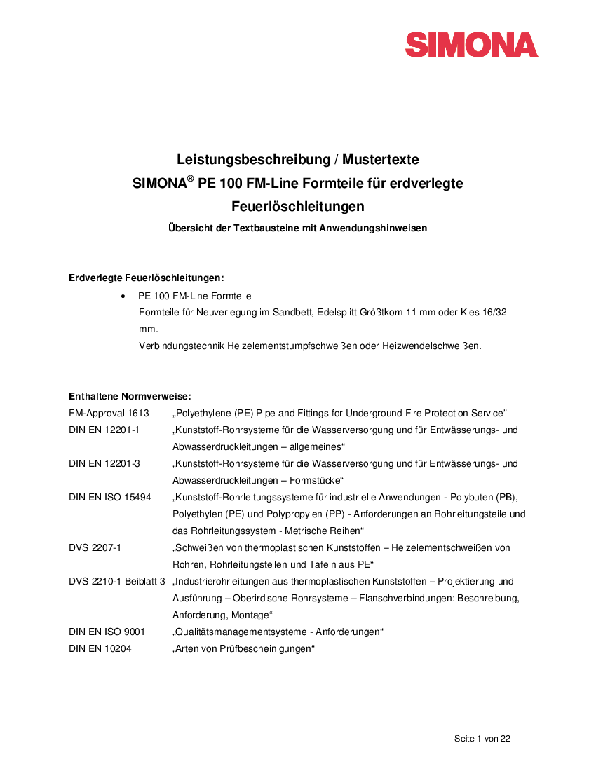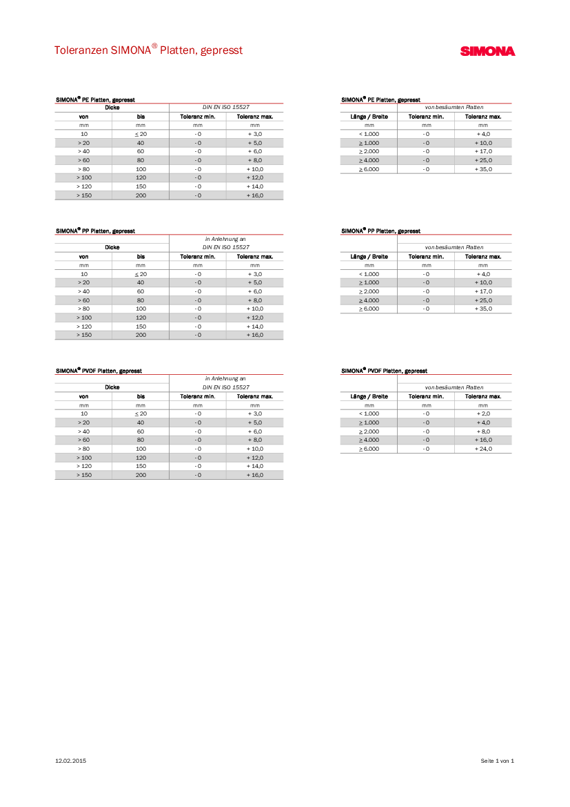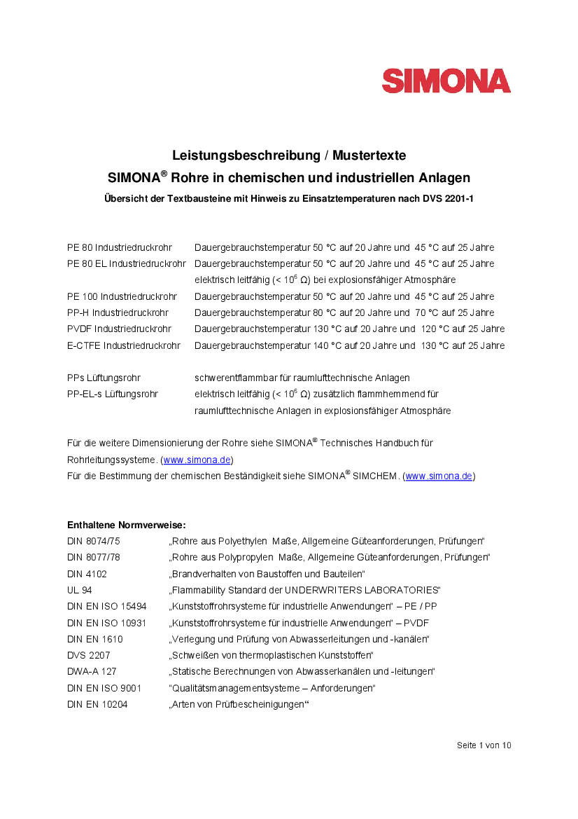 Bruttopreisliste Rohre, Formteile, Armaturen - SIMONA® PP, PPs, PVDF, ECTFE