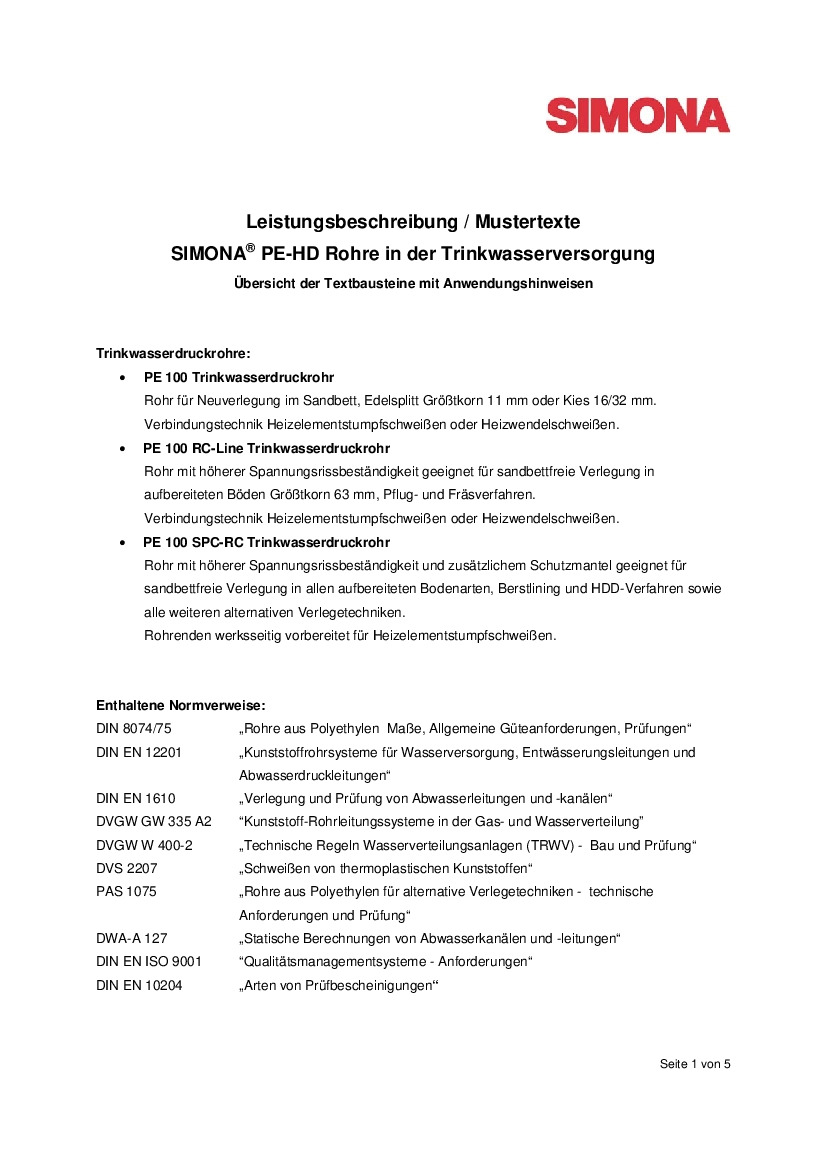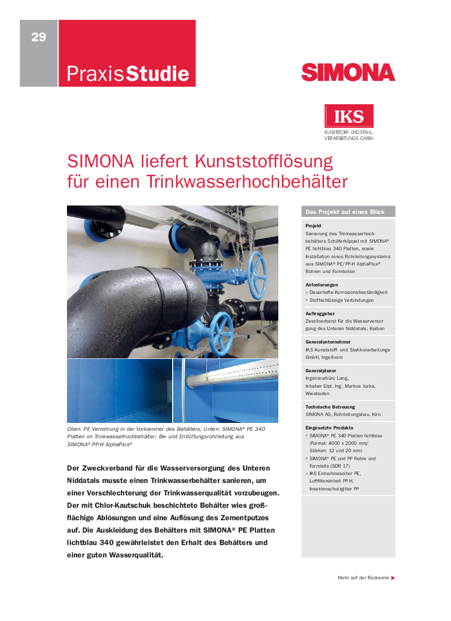 SIMONA® Rohrsysteme für die Trinkwasserversorgung Sichere und effiziente Lösungen aus Kunststoff Broschüren