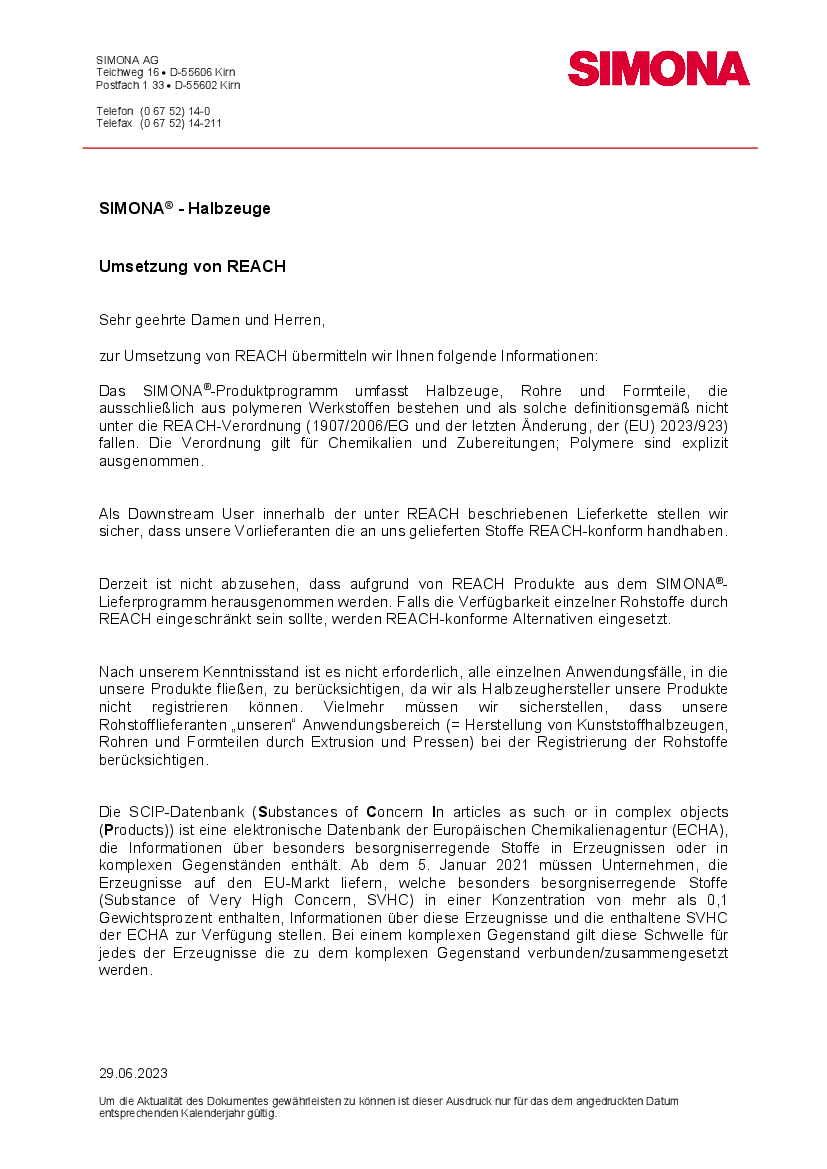 Jahresabschluss des SIMONA Konzerns 2023 Broschüren