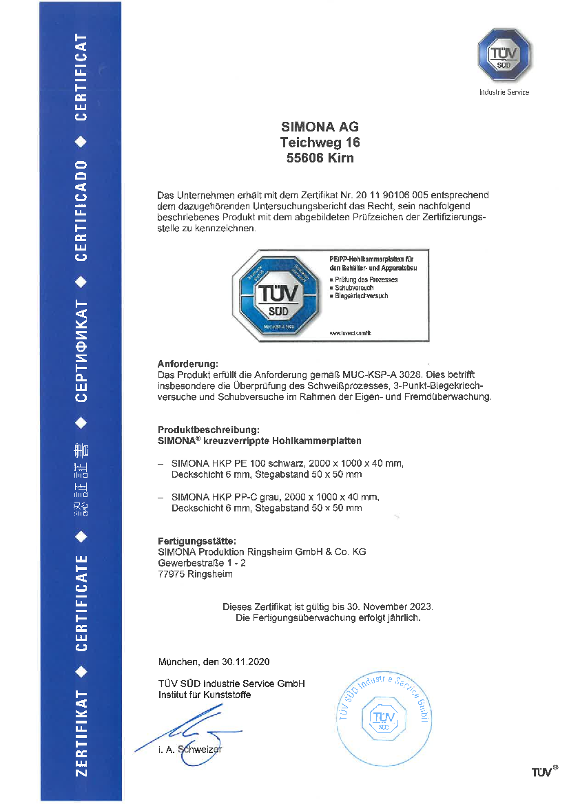 Zertifikat PE/PP Hohlkammerplatten Broschüren