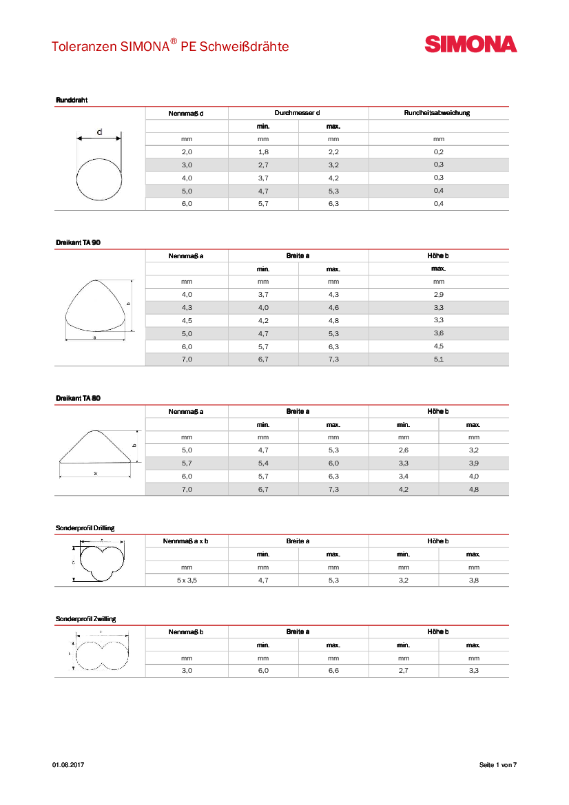 Bruttopreisliste SIMONA® U-Profile, Vierkantrohre Broschüren