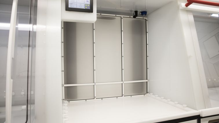 Die Durchführung der Analysen bedingt eine metallfreie Reinraumumgebung, denn schon die kleinste Kontamination oder Reaktion mit metallischen Stoffen würde die wissenschaftlichen Ergebnisse verfälschen bzw. gänzlich zerstören. An Bord der Polarstern gibt es neun festverbaute Labore, die für unterschiedlichste wissenschaftliche Untersuchungen ausgerüstet sind. An und unter Deck gibt es weiteren Platz für Laborcontainer, deren individuelle Ausstattung die Durchführung spezifischerer Forschungsprojekte ermöglicht. Eine solche mobile Containerlösung entwickelte und baute der Vogelsberger Sonderanlagenhersteller MK Versuchsanlagen und sie ist nun im Einsatz als metallfreier Reinraum.