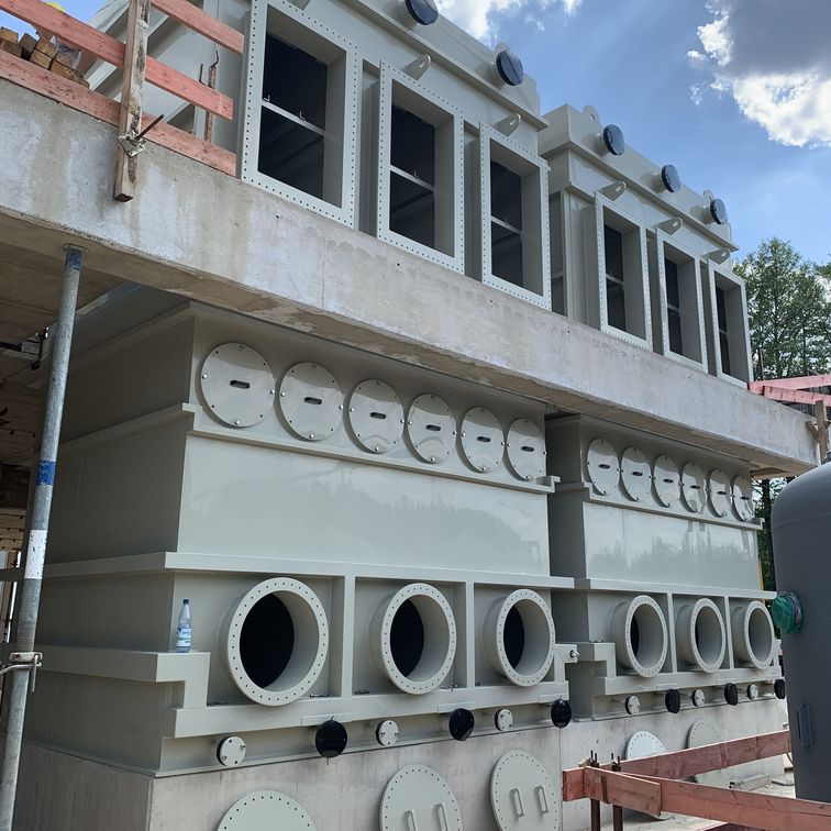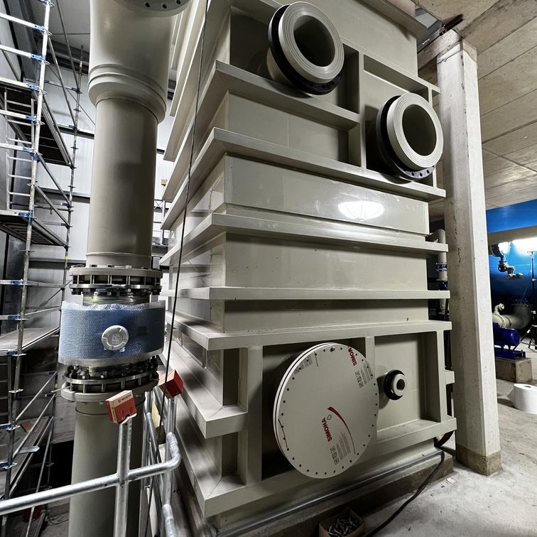 Installation von zwei Rieselkaskaden aus SIMONA® PP-H AlphaPlus® Platten (© DFW Kunststoff- und Anlagenbau GmbH)