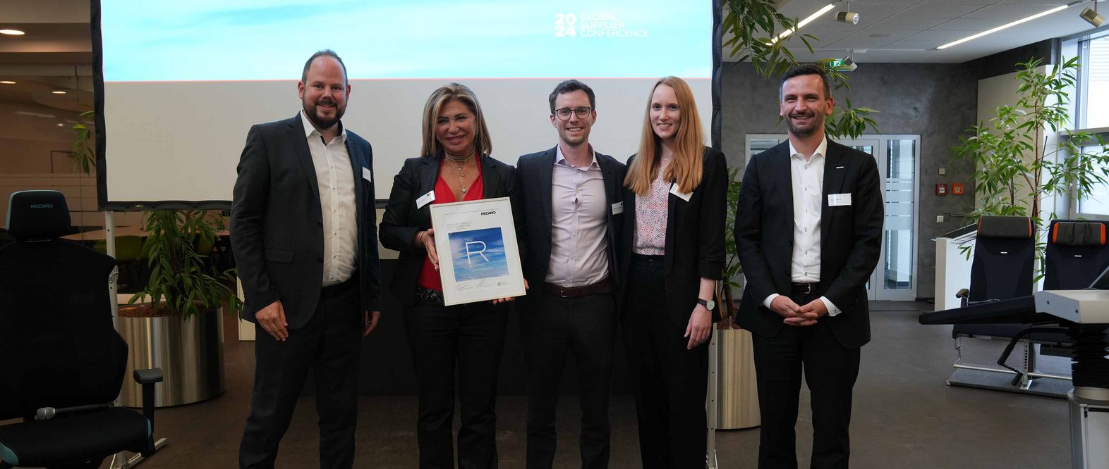 Kirn, November 18, 2024. SIMONA Boltaron, a SIMONA Group company specializing in aircraft interiors, has received the RECARO Aircraft Seating Sustainability Award. The award, the first of its kind to be conferred by the company, was presented at the RECARO Global Supplier Day event in Schwäbisch Hall, Germany. RECARO Aircraft Seating is a market leader for seating solutions in the aviation industry, the focus being on combining innovation with comfort. The Global Supplier Day brought together suppliers from around the world and acknowledged achievements in various categories. SIMONA Boltaron was recognized for sustainable innovation in the aviation industry.
